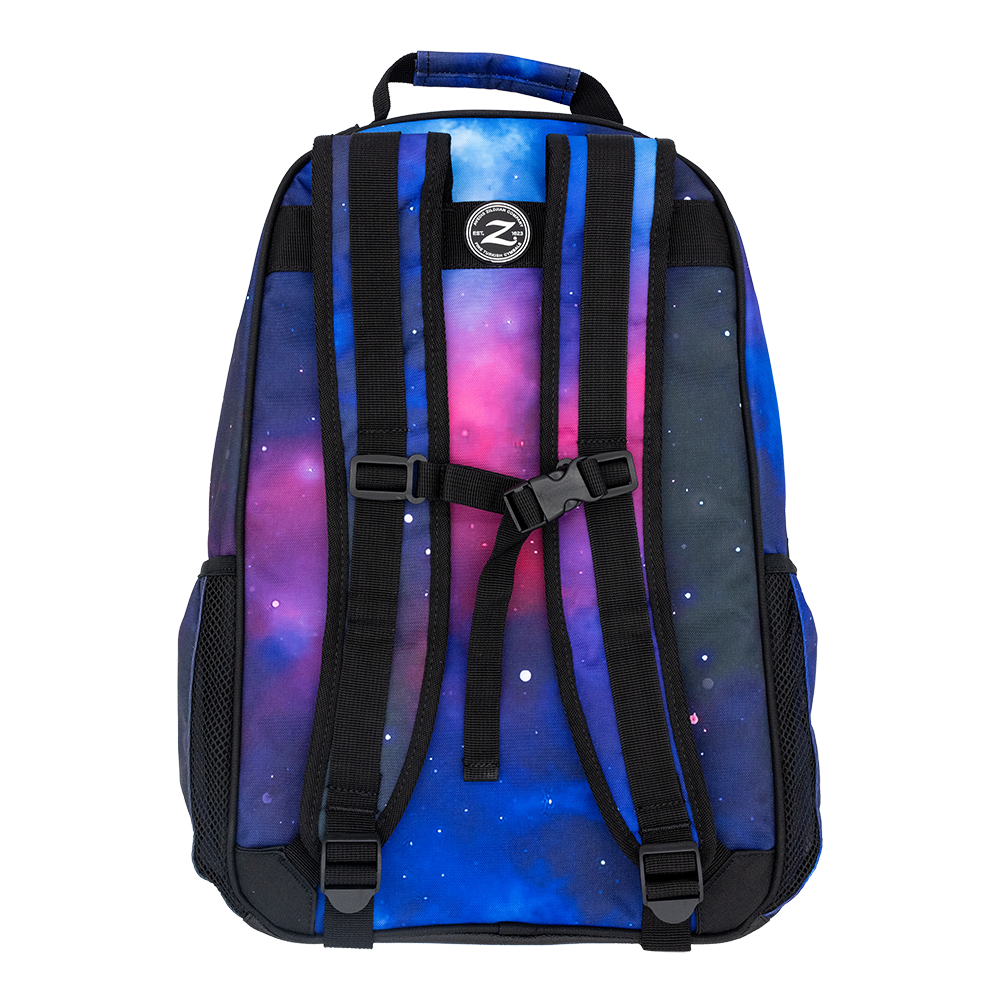 大容量のバックパックのメインコンパートメントには、教科書、ノートパソコン等を収納でき、チェストクリップ付きのパッド入りストラップ、大きなフロントジッパーポケット、ウォーターボトルポケット、ネオプレン製の底材が付いています。