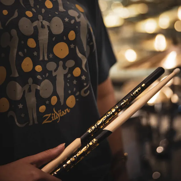 この限定スティックのデザインは、Zildjianシンバルがポピュラー音楽に参入したことを記念しています。19世紀半ばから後半にかけて、ベルリオーズやワーグナーなどの作曲家は、楽曲にシンバルを多用するようになり、ジルジャンシンバルのみを使用することを要求しました。オーケストラでシンバルが重要な位置を占めるようになったのは、この時期です。同じ時代のトルコのタペストリーからインスピレーションを得た、オーケストラの打楽器奏者のシルエットのイラストでこのマイルストーンを祝っています。 *生産完了品